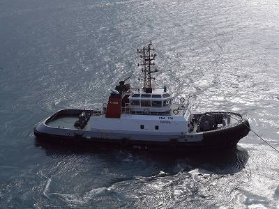 船は入船で船体を桟橋につけていますので、引っ張り出すタグが既に待機。