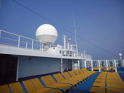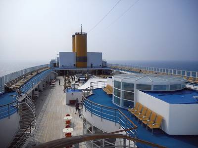 Solariumのデッキから船体中央部を見るとこんな感じ。