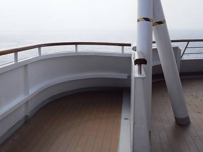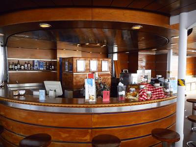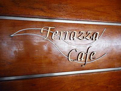 前記事で、上からの俯瞰の写真は載せたと思うのですが、船尾にあるTerrazza Cafeの看板です。