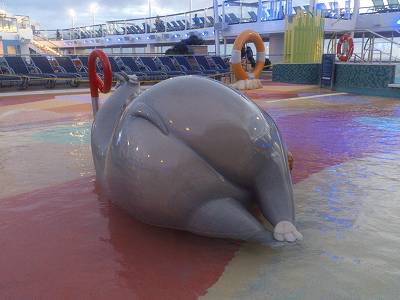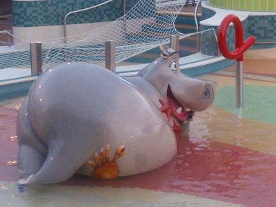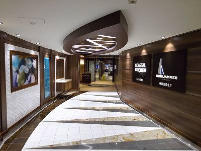 2件キャラ満載ですねー。 楽しくって、子供は大喜びでしょうね♪♪ そして、ウインジャマー前の通路! ロイヤルカリビアンらしくない、シックな内装ですねー♪♪ (^o^) でも、このスイート専用レストランも、今ではChina仕様のご飯が提供されてるのかなぁ?悲しくなりますね。 手洗いコーナーは嬉しいけれど、手洗いソングはキツイなぁ… σ^_^;