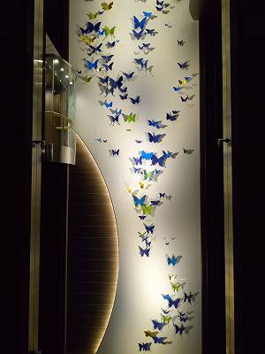 吹き抜けエレベーターホールの壁面