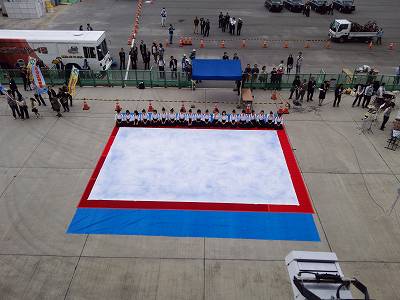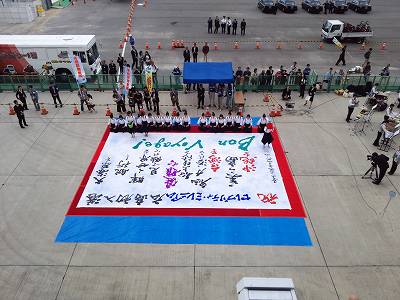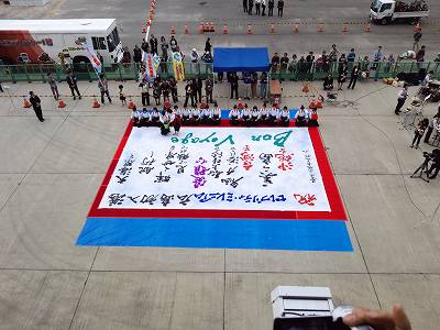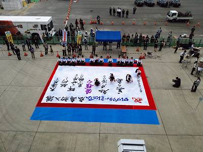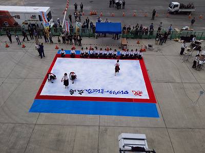 出港イベントの目玉は地元、五日市高校書道部による「書道パフォーマンス」