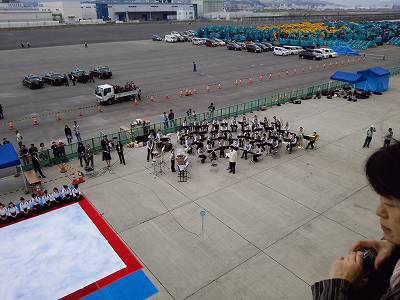 横では吹奏楽の演奏も。この演奏に合わせてのパフォーマンスという事らしい...
