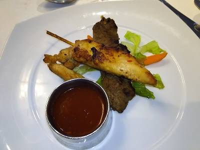 "バリ風牛肉と鶏肉のサテ"