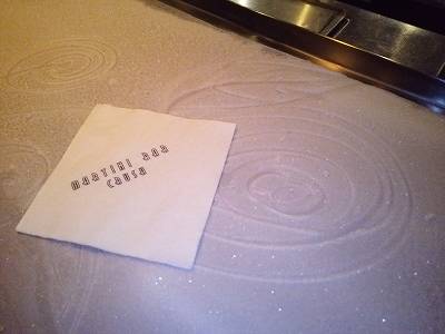 カウンターテーブルの上にはクラッシュアイスが敷かれてます。