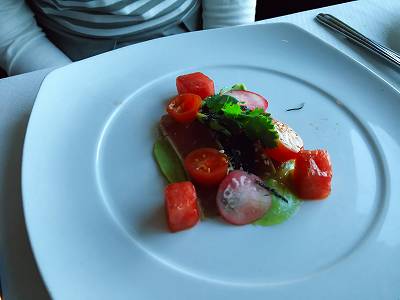 マグロの切り身のサラダでした。ちょっとカルパッチョ風。