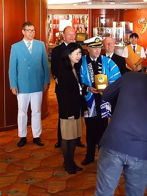 船内での入港歓迎セレモニーがメインで、その後、1時間ほどの船内見学なんだそうな。