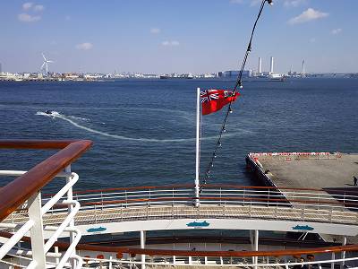 yuさん、こんにちは。 探せば写真も在ると思うんですけどね…(^^;) 飛鳥IIになる前の話で… 確かダイヤモンドプリンセスを作ってた時の訪問だったかと… ※燃える前です。 湾内に商船三井のさんふらわあつがるが係船されてた時期です。