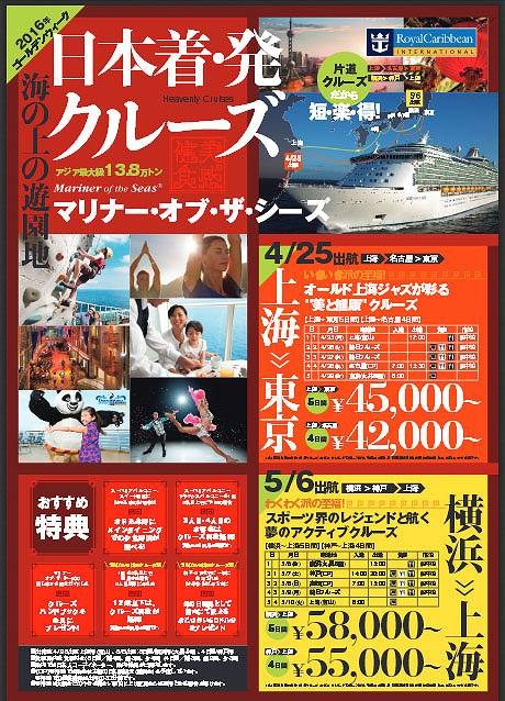 マリナー・オブ・ザ・シーズのGWクルーズ、叩き売りが始まってます。