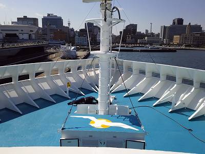 この船首のテラス、下の層にもそれぞれあって、階段で下りられるんですけどね。