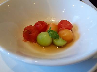 バターアーモンド、チョコレートチップ、ハニデューメロンシャーベット