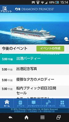プリンセスも他社に倣って(?!)、船内ポータルのシステムを提供してます。