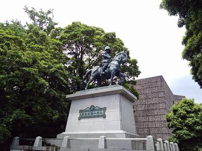 山内一豊像土佐藩の初代藩主山内一豊(やまうちかつとよ)の銅像は、平成8年(1996年)9月20日、一豊の祥月命日を卜して再建除幕されたものです。 本体はブロンズ鍛造青銅色仕上げ、高さ4.32メートル、重さ3.6トン、台座5.08メートル、総高9.4メートルで、騎馬像としては、皇居前の楠木正成像を上回る、国内最大クラスであるといわれております。