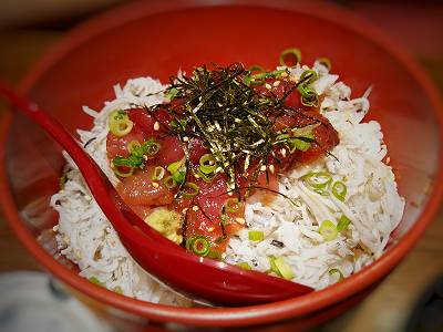 「中落ち鰹と釜揚げシラス丼」