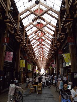 はりまや橋から東,全長約120メートルに約40店が軒を並べる商店街。 高知県産の木材を使用した全国的にも珍しい木造のアーケードを平成10年に取り入れており,そのとき名称を中種商店街からはりまや橋商店街へ変更し新たにスタートしました。 よさこい祭りの競演場の一つにもなっています。
