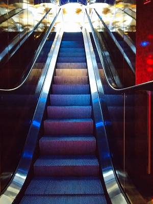 Skywalkersへ上がるエスカレータ