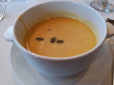 "カレー風味の冷たいパンプキンクリームスープ"