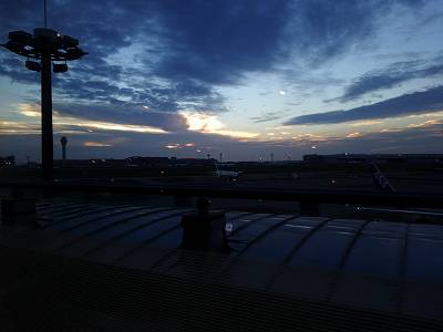そのまま湾岸線で行って、国内線ターミナルの方から国際線へ周った方がいいのか、それとも、素直に1号線へ流れて、いつものように空港西出口のところから国際線ターミナルへ行った方がいいのか...