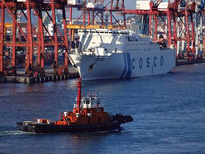 その奥にはCOSCOのフェリー