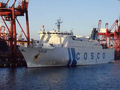 COSCOのフェリーの真正面