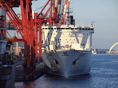 港の出口付近に停泊してたRORO船?