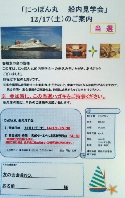 東京港客船友の会主催のにっぽん丸見学会、当選通知が来ました!