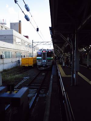 ホーム反対側には「快速エアポート」千歳空港行きの733系電車。