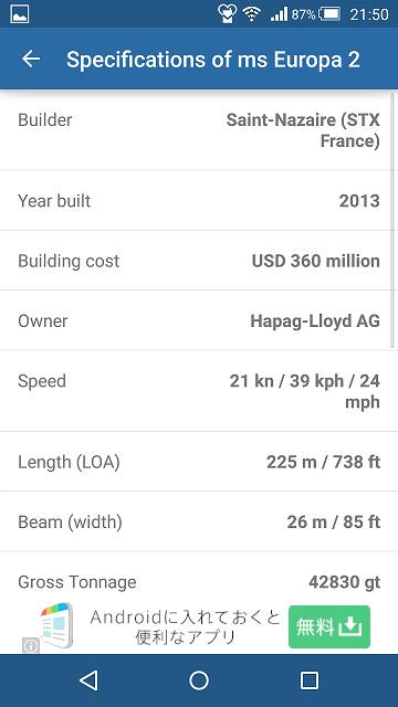 Cruise Mapper とよく似た飛行機版は知っていましたが、船もあるのですね。 いや、飛行機版は航空会社とサイズくらいしかわかりませんでしたが。 前のパソコンにブックマーク入れていたんですが、移植してきて内容で、 サイト、忘れてしまいました。