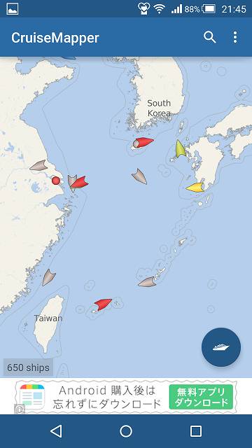 マリトラはAIS搭載船舶が全部出てきちゃいますが、このアプリはクルーズ船しか出てきません。