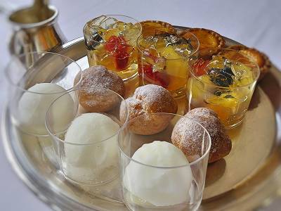 ・氷菓子 ・CCT特製タルト ・プチシュー ・ミックスフルーツゼリー