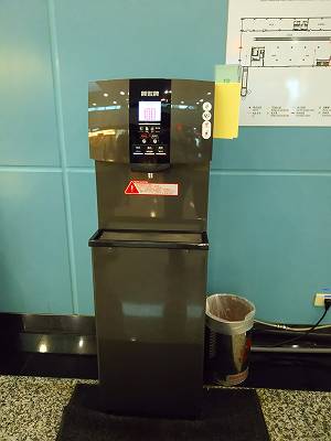 ボーディングゲートの通路の各所においてあった飲料水機。