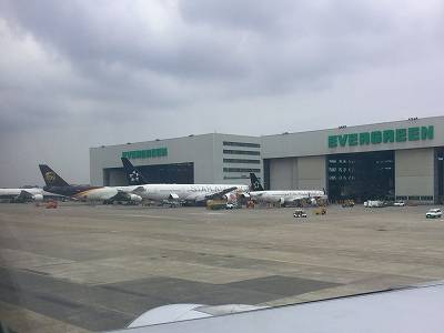 途中、エバーグリーンの格納庫。