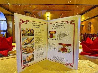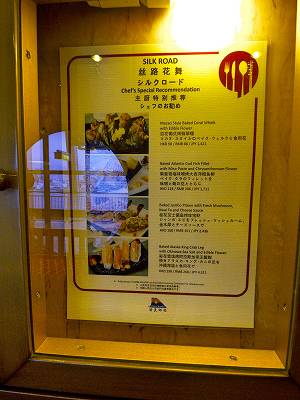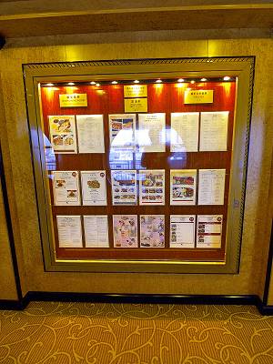 船内全レストランのメニュー掲示板。