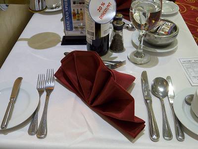 今回のクルーズ、船のメインダイニングで食べるのは初になりますね...