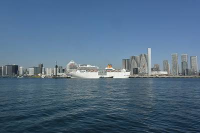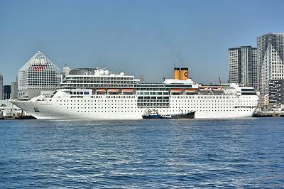このコスタ・ネオロマンチカの東京発着は、ちょうどこの時間帯は給油タンカーが横についてしまうのが玉に瑕...