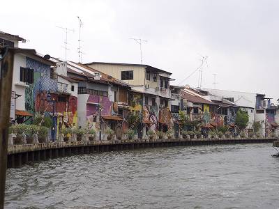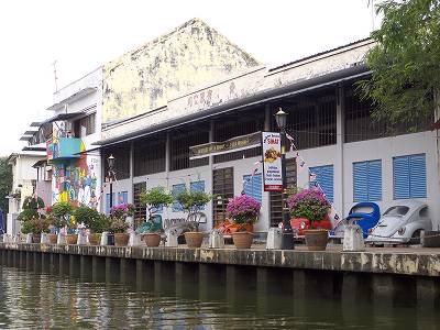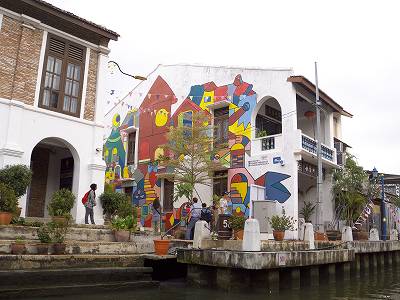 このマラッカのリバークルーズの目玉の一つが、建物アートです。