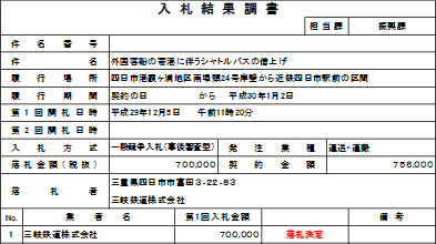 外国客船の寄港に伴うシャトルバス運行仕様書 1事業の趣旨 外国客船「コスタネオロマンチカ」の寄港に係り、客船の着岸岸壁と近鉄四日市駅前と を結ぶ無料シャトルバスを臨時に運行する。 2日時 平成30年1月2日(祝)7時00分 四日市港発〜17時10分四日市港発まで 3区間 四日市港霞ケ浦地区南埠頭24号岸壁から近鉄四日市駅前の区間 ※運行当日、上記区間において、業務遂行に関し必要な各種法令に基づく 許可、認可、免許等を有していること。 4便数 (1)四日市港発近鉄四日市駅前区間 7時00分四日市港発 17時10分四日市港発で終了 時間帯に応じて、10分、20分、30分間隔で運行 5利用予定者 一般見学者及び外国客船の乗船客 6条件等 (1)乗車定員50人以上 (2)燃料費、乗務員費用、駐車料金など運行に伴う一切の費用を含む。 (3)行程、出発・到着時間については、当日の交通事情等により、若干の変 更があり得るものとする。 (4)バスの運行に際して、法令を遵守し、運行に発生した事故に関しては、 一般貸切旅客自動車運送事業標準運送約款又は標準旅行業約款により損害 賠償を行うこと。 (5)天災その他やむを得ない事情により外国客船の寄港が中止する場合は、 発注者と協議のうえ、その時点において既に発生している債務に対する支 払いのみ請求できるものとする。 (6)暴力団員等による不当介入を受けた場合の措置について ア 受注者は暴力団員等による不当介入を受けた場合は、断固としてこれを拒 否するとともに、不当介入があった時点で速やかに警察に通報を行うととも に、捜査上必要な協力を行うこと。 イ アにより警察に通報を行うとともに、捜査上必要な協力を行った場合には、 速やかに発注者に報告すること。発注者への報告は必ず文書で行うこと。 ウ 受注者は暴力団員等により不当介入を受けたことから工程に遅れが生じ る等の被害が生じた場合は、発注者と協議を行うこと。 (7)本仕様書に記載のない事項については、発注者と協議のうえ決定すること。