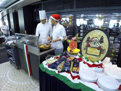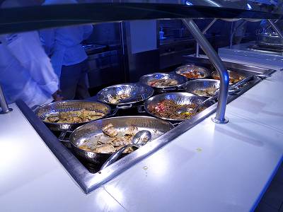 ぼるキャビさん、こんばんは。 ビュッフェのカウンターの料理は、どうしても時間が経っちゃいますから。 ショートパスタがお薦めです。 クルーが少ないと覿面にサービスに影響がありますよね。