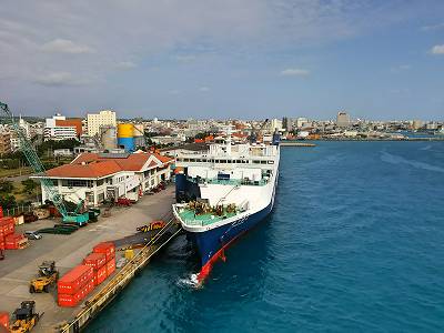 RKK LINE 琉球海運 RORO船「かりゆし」 2002年竣工 船籍港: 那覇 総トン数: 9.943t 全長: 154.07m 型幅: 23.0m 型深さ: 15.45m 航海速力: 21.5ノット