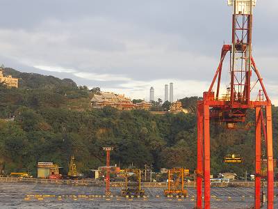 クルーズターミナルの対面にあるフェリーターミナルには、元日本のフェーリが...