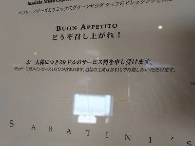 インターナショナルダイニングへ行きすがら、サバティーニのメニューをチェック。
