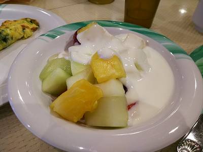 フルーツにプレーンヨーグルトをかけます。