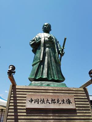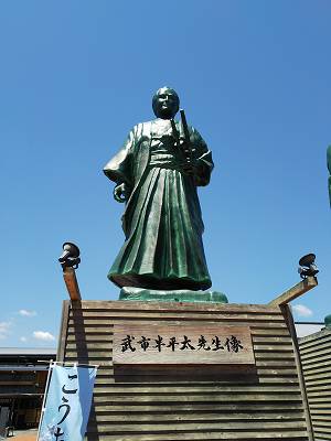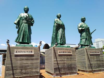 表に回ってみると、高知が誇る偉人の皆様の銅像が...