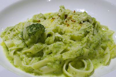 "ハーブチキンのタリアテッレ、ブロッコリソース"