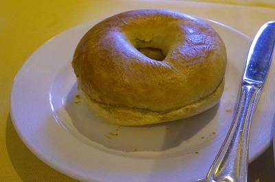 "スモークサーモン、ベーグルのクリームチーズ添え"