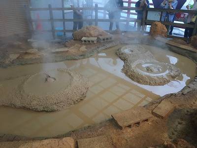 泥の水溜り(?)がぶくぶく泡立ってるんですよ...