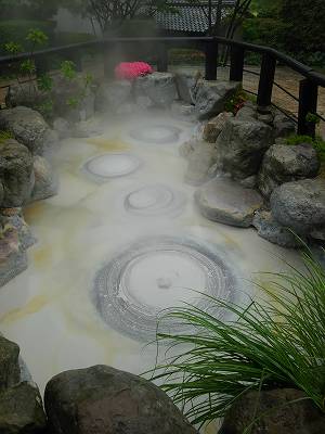 硫酸鉄によって一見涼しげなコバルトブルーの色ではあるが、その温度は98度もあるそうな。