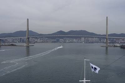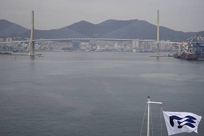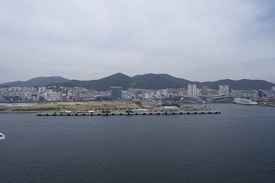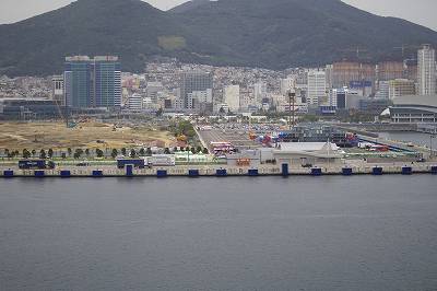 釜山中心地に近い場所に新しく出来た桟橋へ接岸します。