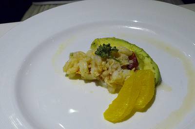 "3種類のシーフードとシトラス、アボカドの盛り合わせ"