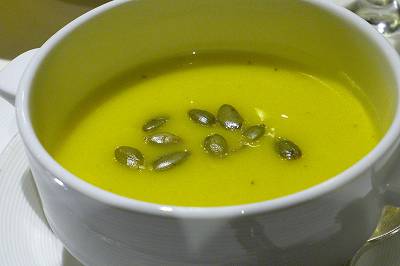 "カレー風味の冷たいパンプキンスープ"